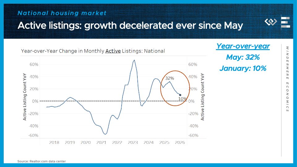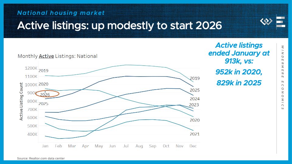 Turning to the housing market, we saw 913,000 active listings at the end of January, which is the most since January 2020, on the eve of the pandemic. In other words, nationally, inventory is finally nearly back to normal.