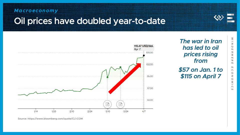 The first number to know this month: $115. That was the level that price of a barrel of oil reached on April 7, and it happens to be exactly double the price of oil at the start of 2026.  The war in Iran has dragged on into its second month now, and it’s continuing to cause an energy crisis that’s rippling out through the global economy. An energy shock like this raises the costs of making and transporting almost everything, so the longer this goes on, the more inflationary pain it will inflict this year.